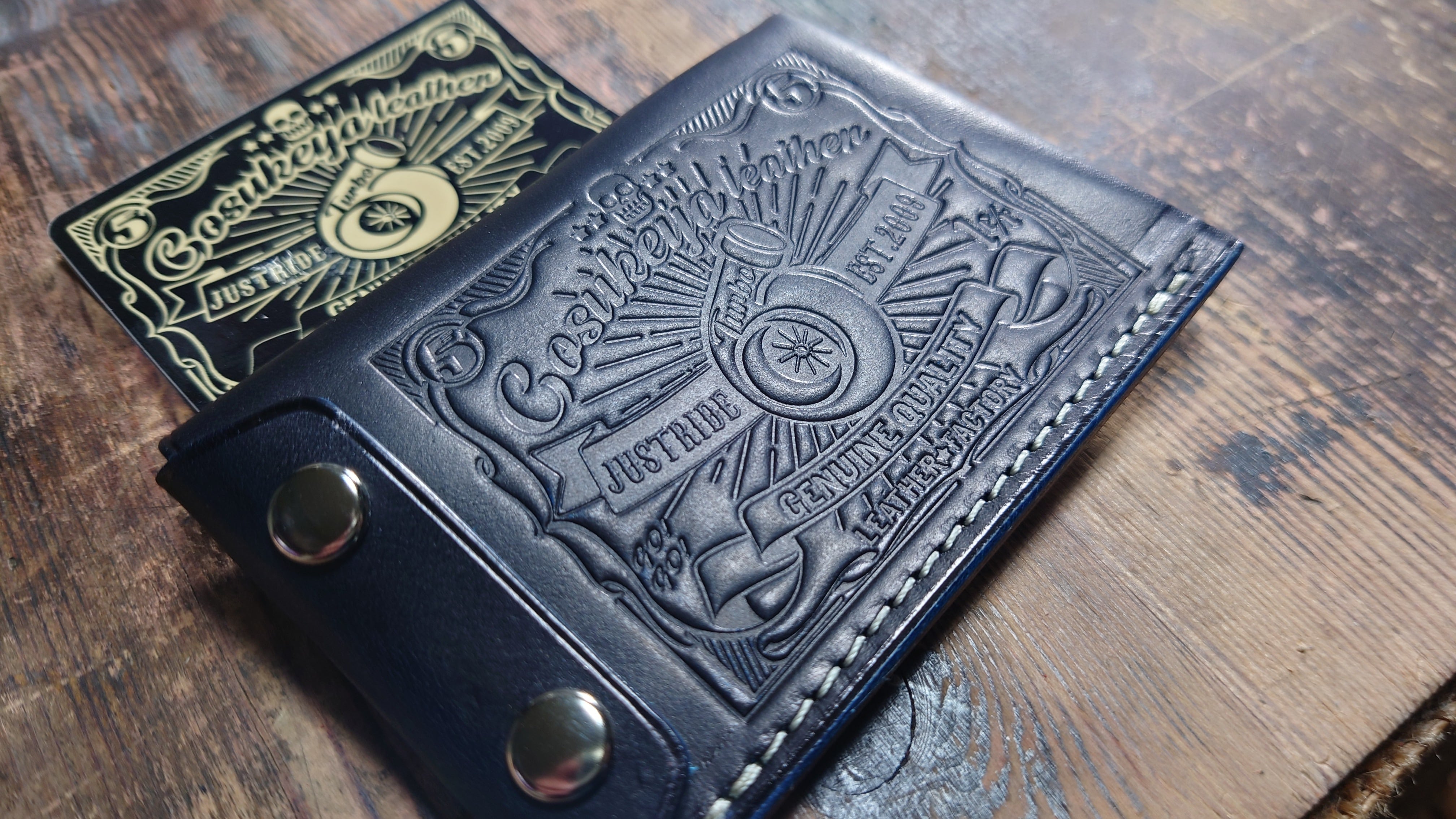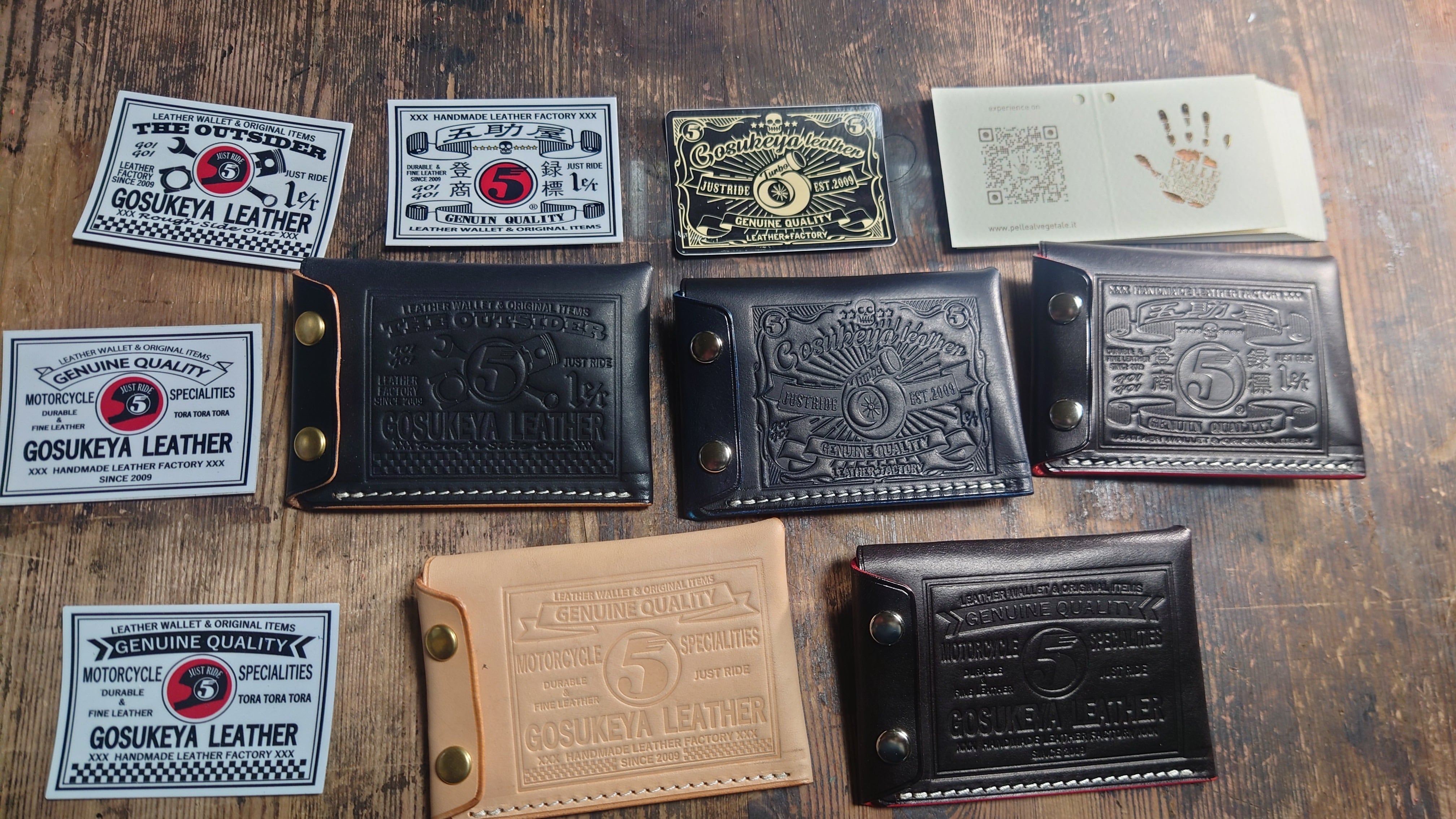 大変ご好評いただいております、五助屋ライダースミニですが、さらにそれよりも小さくちいさく、同じ型で、コインケース、カードケース、名刺入れ、携帯灰皿、IDカードホルダー、キーケースなどに出来るよう、また基本の型を共有することにより安価に提供できるモデルを作りました。手の平に収まるサイズ感を重視。