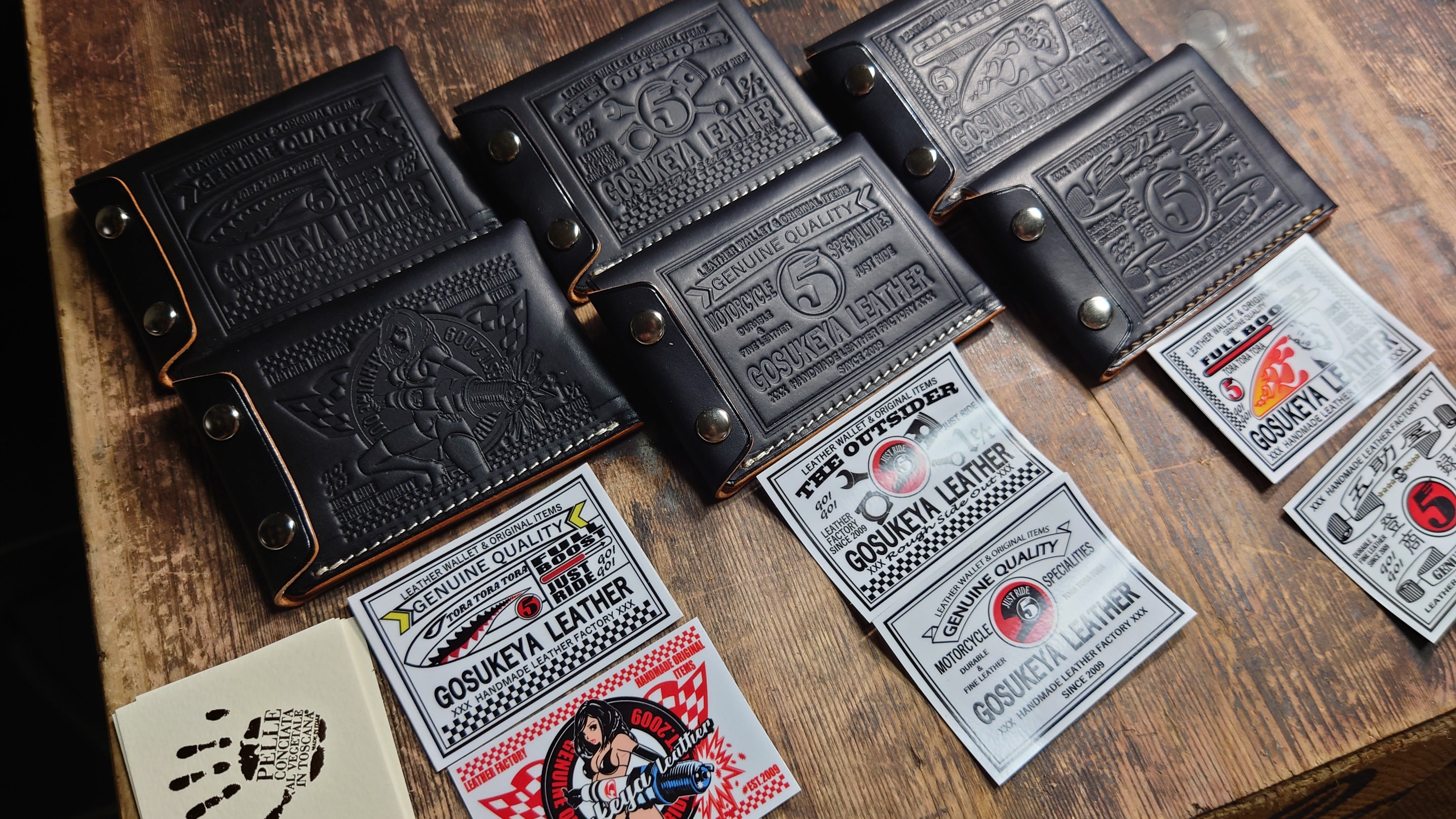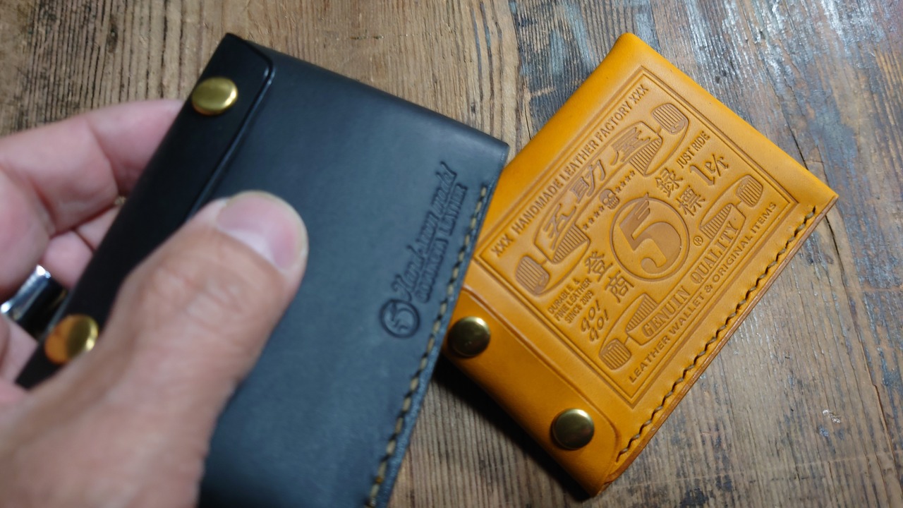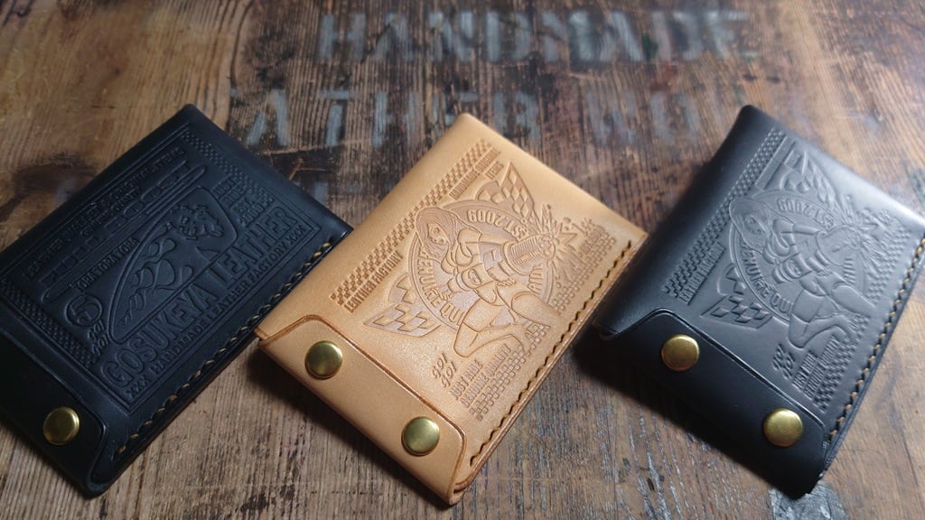 大変ご好評いただいております、五助屋ライダースミニですが、さらにそれよりも小さくちいさく、同じ型で、コインケース、カードケース、名刺入れ、携帯灰皿、IDカードホルダー、キーケースなどに出来るよう、また基本の型を共有することにより安価に提供できるモデルを作りました。手の平に収まるサイズ感を重視。